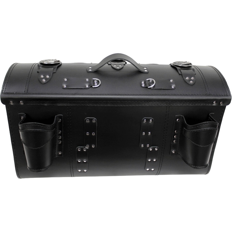 Kožený kufor na motorku RSA s držiakmi na nápoje je ideálnou voľbou pre majiteľov motocyklov chopper a cruiser.