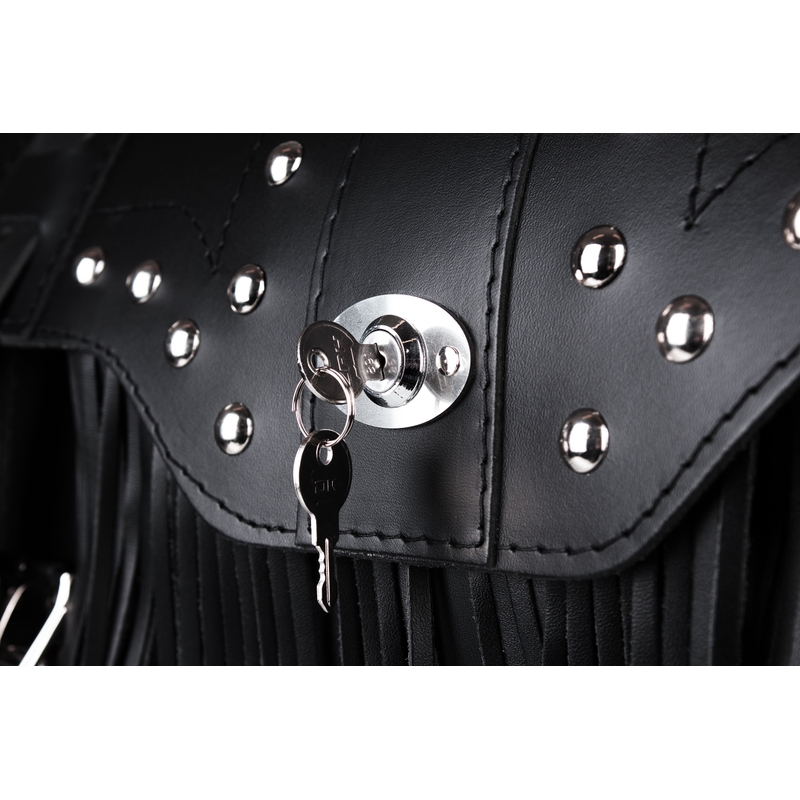 Kufry jsou vyrobeny z hovězí kůže Síla kůže 2-2,2 mm Kufry jsou vyztuženy z vnitřní strany plastovým zpevněním o síle 2 mm Plastové výztuhy kufrů jsou na všech vnitřních plochách Výztuhy zabezpečují stálý a neměnný tvar kufrů Nastavitelná délka ok a popruhů pro připevnění Na bocích příprava pro kapsičky Barva : Černá Délka : 67cm Výška : 35cm Šířka : 32cm Objem kufru : 66l Kufr obsahuje zámek pro uzamčení,kožené pásy pro připevnění k motocyklu Kufry jsou vyrobeny v EU Nejvyšší kvalita zpracování !