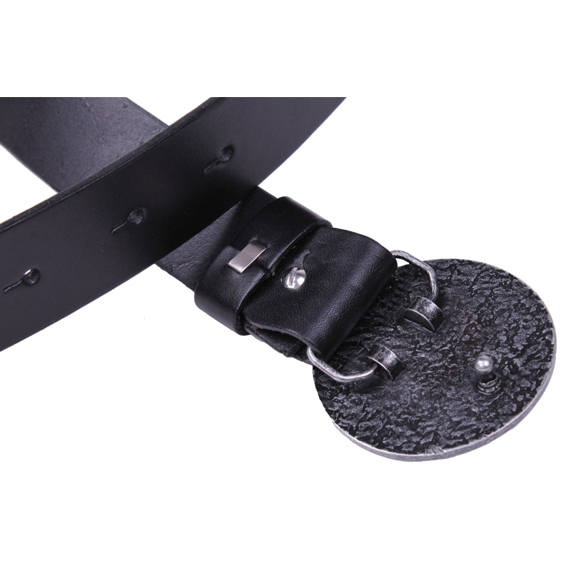 Opasok je opatrený ozdobnou kovovou sponou.